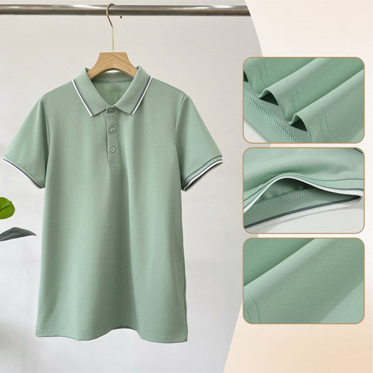 🎉50% Rabatt✨Unifarbenes Hemd aus Eisseide mit kurzen Ärmeln und Revers