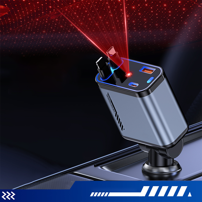 Lieferumfang: 1 * Multifunktionales Schnelllade-Autoladegerät mit einziehbarem Kabel